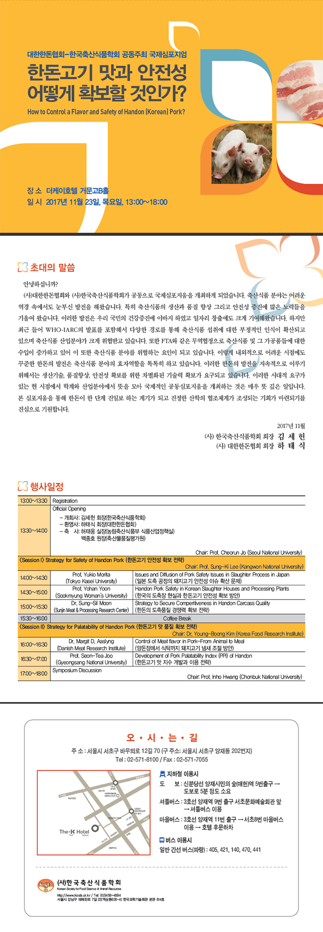 [한국축산식품학회] 대한한돈협회-한국축산식품학회 공동주최 국제심포지엄
